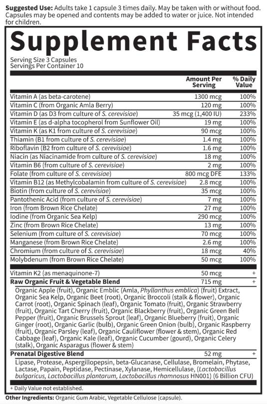 СУРОВАТА пренатална формула „RAW Prenatal” витамините не са обработвани термично, не са третирани и са чисти, не съдържат свързващи вещества и пълнители и са винаги без млечни продукти и без глутен.