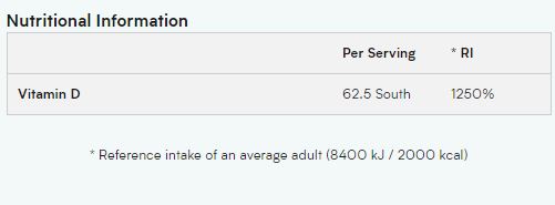 Всяка капсула съдържа 62,5 mcg витамин D (холекалциферол) в маслинено масло за по-добра усвоимост, което подпомага нормалното усвояване на калций и фосфор и поддържа здравето на зъбите, костите и мускулите. Особено полезен е през периоди с ограничено слънце.