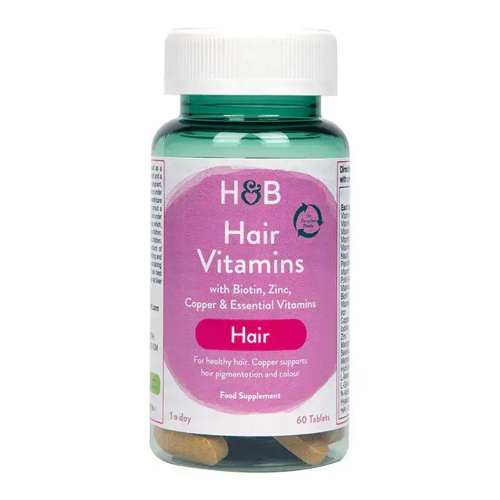 Holland & Barrett Hair Vitamins е висококачествена хранителна добавка доставяща всички нутриенти, от които се нуждае Вашата коса, за да бъде по-гъста, по-лъскава и по-здрава. Формула поддържаща естествената пигментация на цвета на косата. Комбинира витамини, минерали, колаген, хиалуронова киселина и аминокиселини.