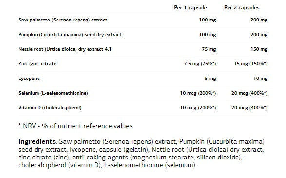 • Смес от екстракти от сереноа крип и корен от коприва, подпомага здравето на пикочните пътища.