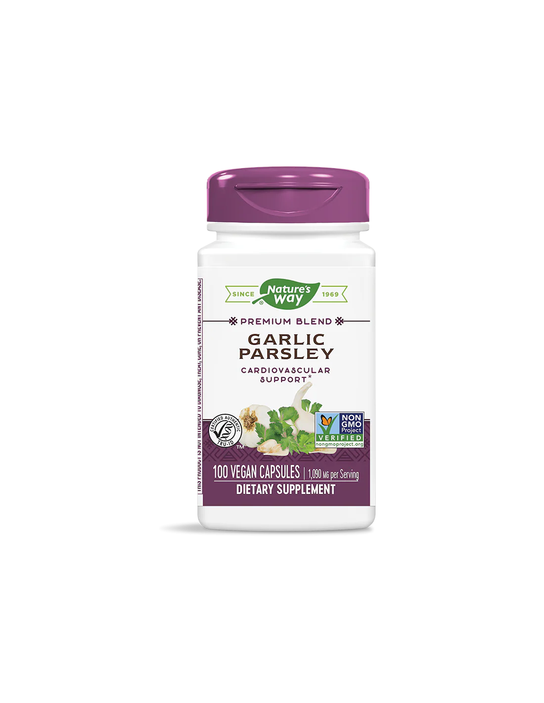 Формулата чесън и магданоз на Nature's Way комбинира полезните качества на чесъна с дезодориращия ефект на магданоза. Тази формула е внимателно тествана и приготвена според най-високите стандарти за сертифицирано качество. Не съдържа глутен, дрожди, пшеница, царевица, соя, млечни продукти, изкуствени оцветители и консерванти.