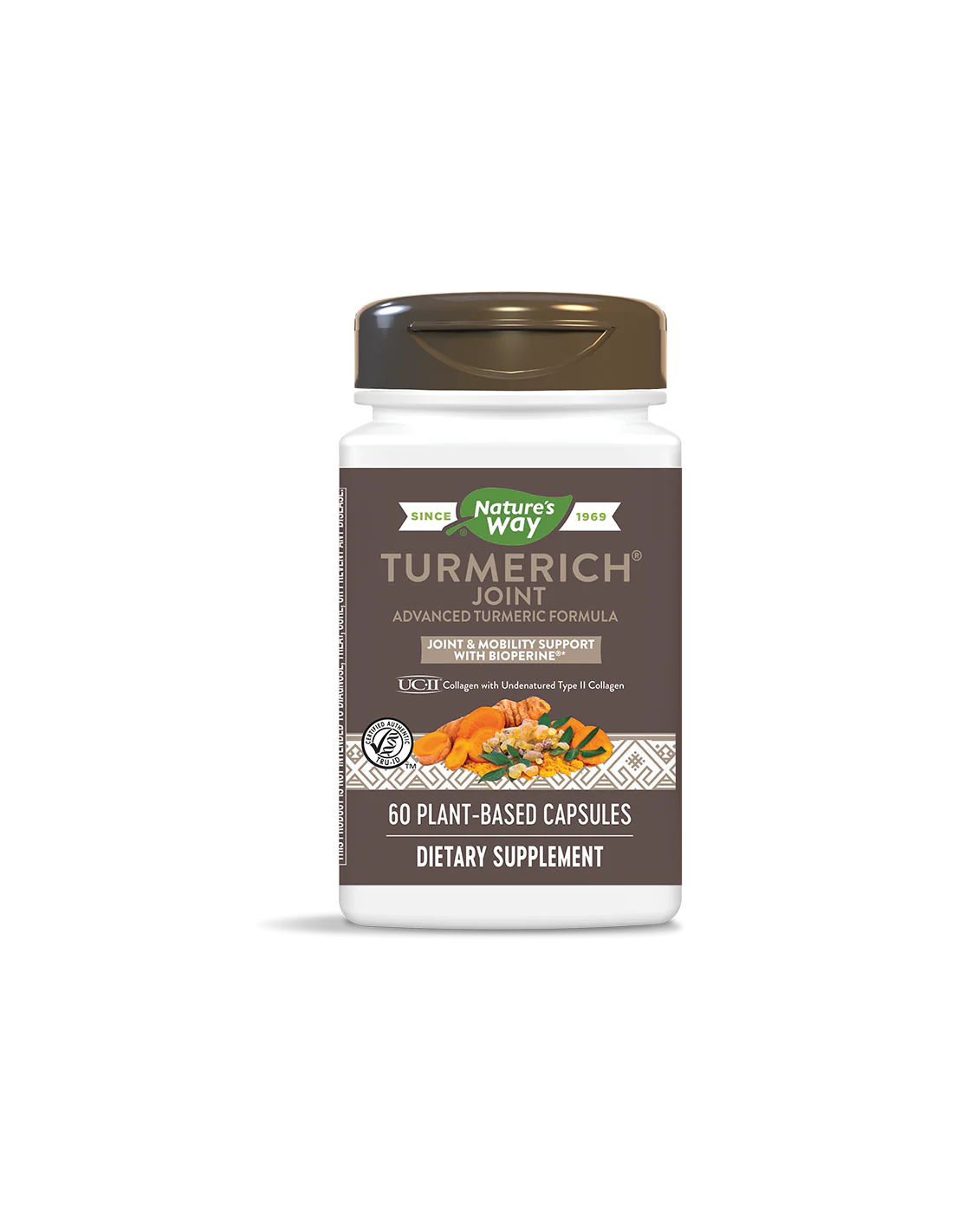Turmerich Joint е природна формула, отлична алтернатива на конвенционалните болкоуспокояващи и противовъзпалителни средства! Основна съставка в продукта е екстрактът от куркума, стандартизиран до високи нива на куркуминоиди – вещества със силно противовъзпалителни и болкоуспокояващи свойства. Куркуминоидите са комбинирани с екстракти от босвелия и оргáник репей, и високо ефективен патентован комплекс колаген тип II UC- II®.